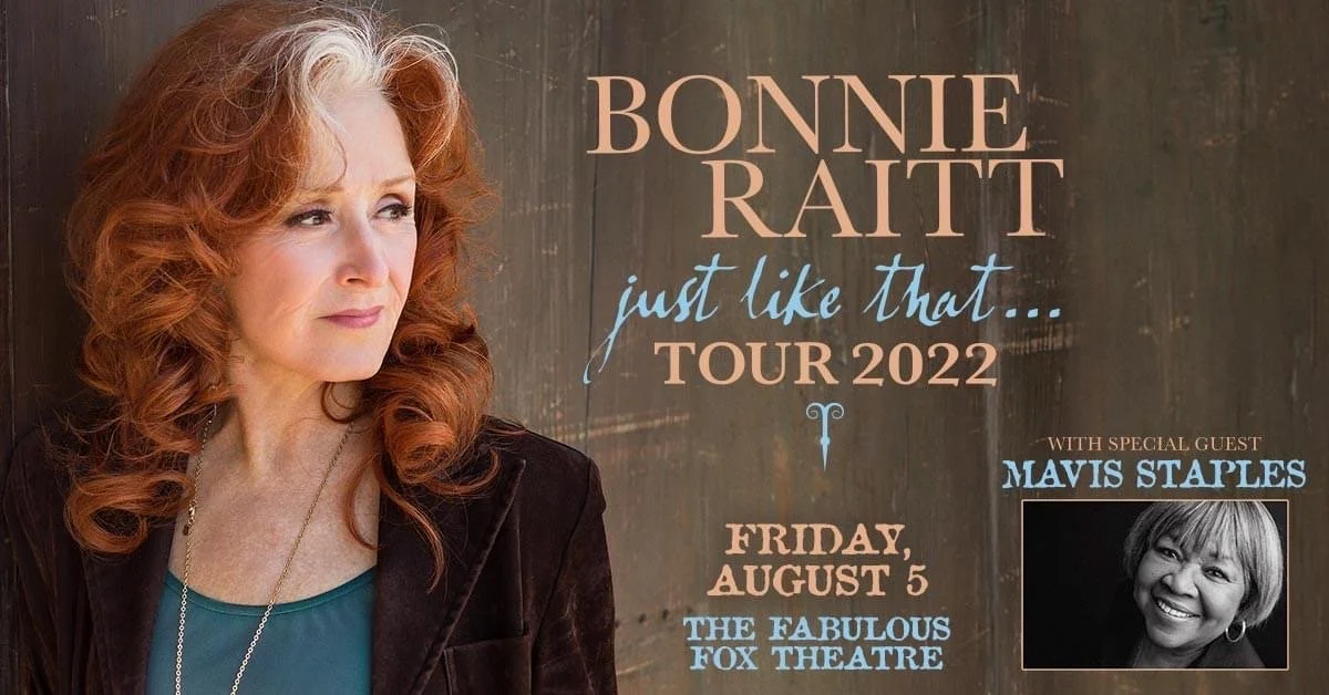 Bonnie Raitt - Just Like That Tour 2022 - Fox Theatre - St Louis, MO Friday, August 5, 2022 7:00 PM 8:00 PM 19:00 20:00 Fox Theatre 527 North Grand Boulevard St. Louis, MO, 63103 United States (map) Google Calendar ICS