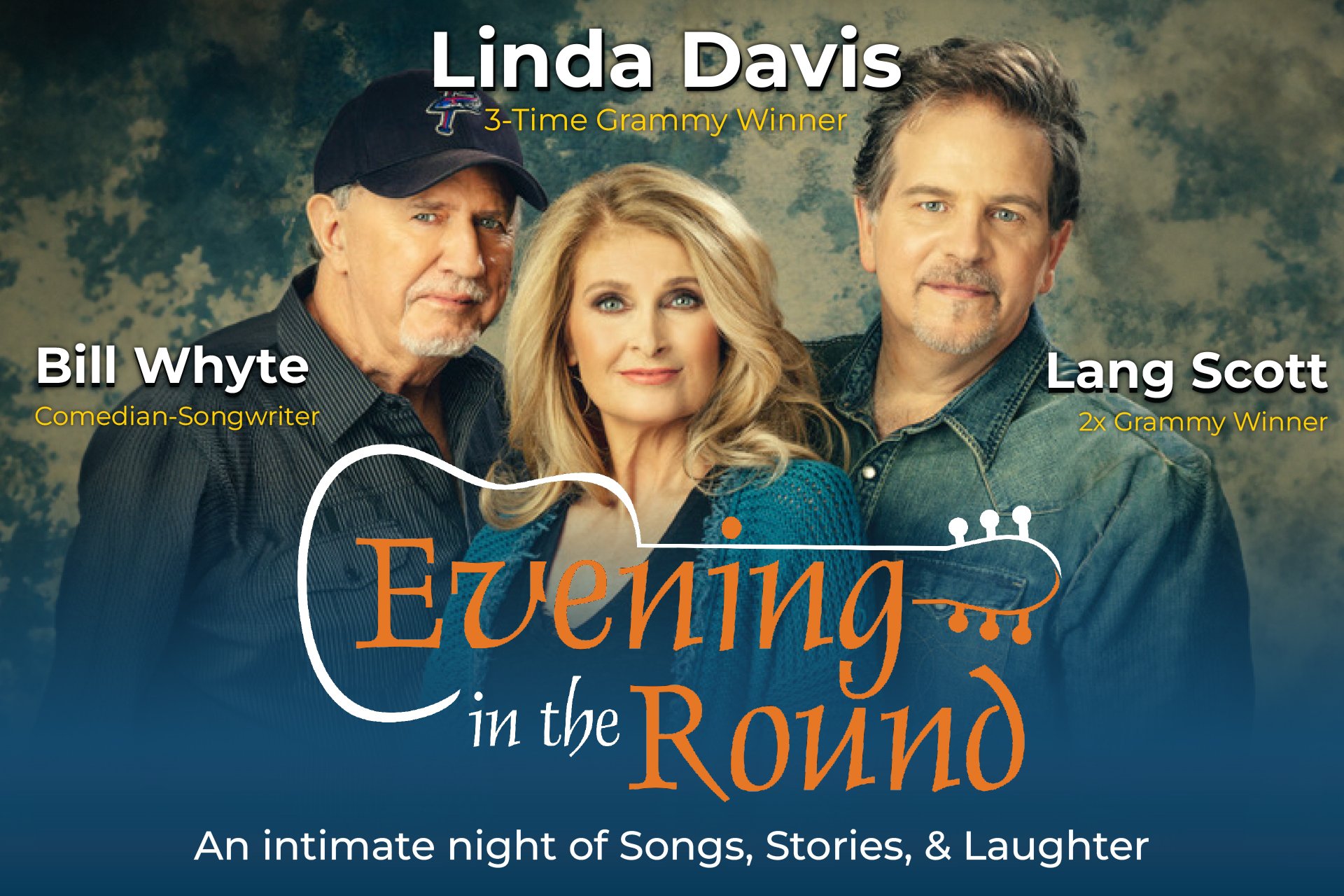 Three of Nashville's most talented singer/songwriters will bring a little taste of Music City to the stage when they perform an "Evening in the Round." The intimate night of acoustic music, starring Grammy award winner Linda Davis and hit songwriters Lang Scott and Bill Whyte will be injected with hits, humor, and a whole lot of down-home appeal. Enjoy the stories behind the hits and hear some familiar tunes recorded by some of today's hottest artists, as well as Whyte's own brand of funny songs.